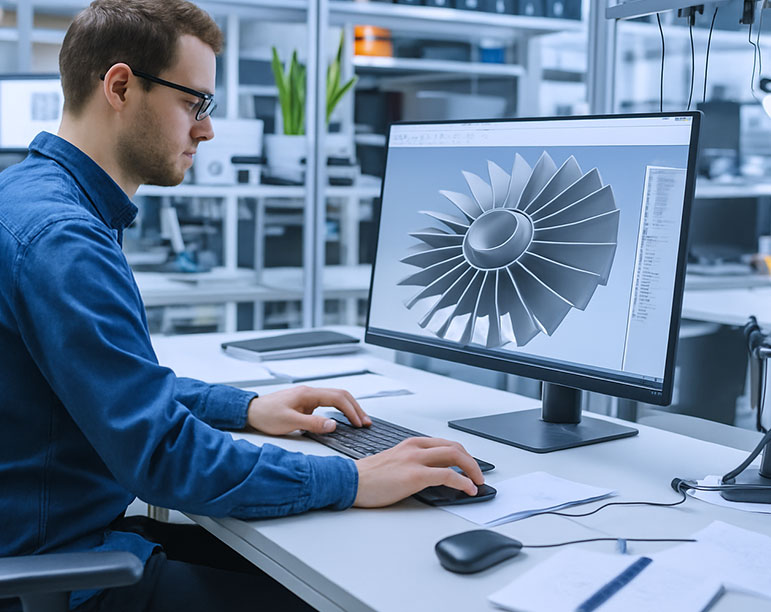 Our expert engineers work closely with client design teams to analyze 2D drawings, 3D models, and technical requirements. Using CAD/CAM software and simulation tools, we define optimized machining strategies, develop NC programs for CNC 5-axis and 9-axis machines, and validate them through digital twin simulation before any physical cut. We engineer dedicated fixtures and holding systems to maintain dimensional stability and process repeatability, even for complex geometries and tight tolerances.